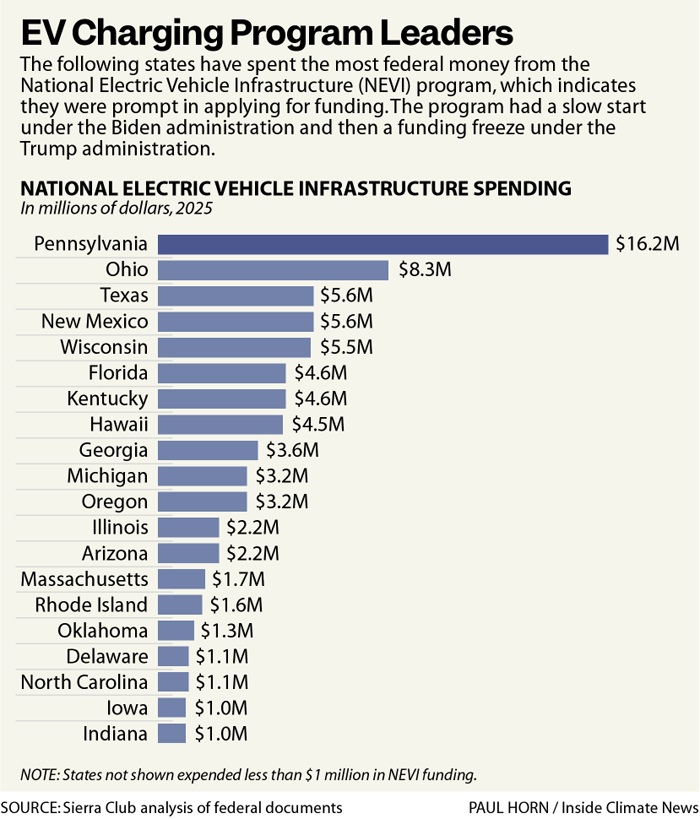 Seria razoável supor que a NEVI não tenha feito muito. Mas um relatório divulgado esta semana pelo Sierra Club conta uma história diferente. Apesar de muitos obstáculos, o programa aumentou o seu alcance e as suas realizações em 2025, com os estados a gastarem 94 milhões de dólares em projetos. Isso é mais que o dobro dos US$ 44 milhões gastos em 2024. Isso se traduz em centenas de portos de carregamento, com acordos para implantar milhares mais.
